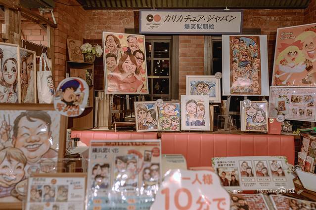 而这家店,也格外吸引了我们的注意。这是一家手绘漫画店,老板现场作画,大概半个小时不到的时间,就可以出炉一张关于你的漫画像,很逼真也很形象,而后来我们才后知后觉的知道,这家店在 横滨 红砖仓库也是小有名气的呦,很多人慕名前来画像呢~