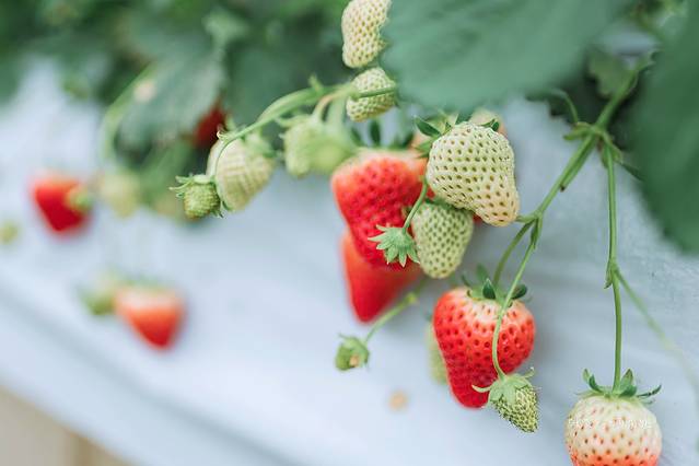 而与国内草莓采摘不同的是,国内草莓直接埋种在土地里,泥土地,虽然享受了采摘的乐趣,却也容易弄脏鞋袜,而 日本 的采摘园,草莓栽种高高的架在了台子上,放眼望去,一道道纯白色的小径,干净整洁,拍出来照片也更好看。