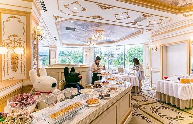 在梦幻的法式餐厅里,透过餐厅的大玻璃窗就可以看见富士山的景色,店内的装潢简直就像在巴黎剧院般豪华。