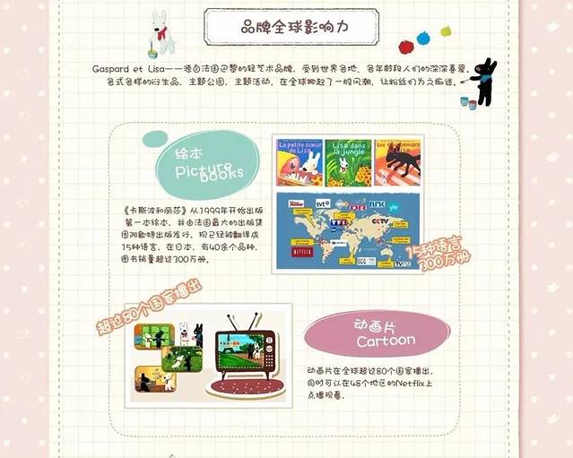 鲜活的笔触、明丽的色彩、生动的形象、儿童画的风格……卡斯波和丽莎的故事亲切动人,他们的绘本故事被译为15种语言,深受世界各地、各年龄段读者的喜爱。以该系列绘本为创作基础,在2010年推出了51集同名动画片,在全球超过80个国家播出。2014年,动画版《卡斯波和丽莎》正式登陆中央少儿频道。