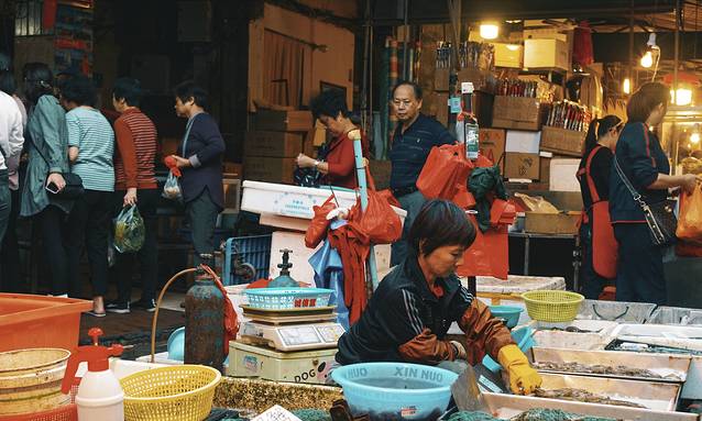 周末市集似乎穿越回旧时光,街头充斥着万家渔火的幻觉