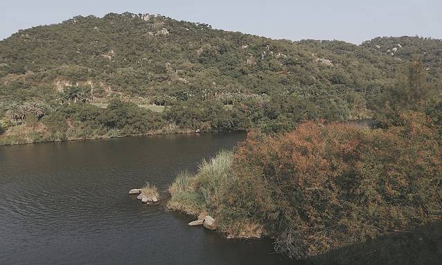 在水域附近有细叶榄仁、美丽异木棉、榕树等