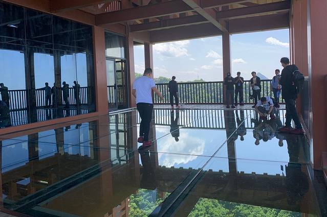 5月1日,万众瞩目的蟠龙道之首——龙首阁正式对外开放,龙首阁位于天贤阁与蟠龙道之间,从远处看形似蟠龙之首,气势如虹,建筑总共四层,占地面积约421平方米。其中三层北侧悬挑约84平方米,为游客打造了一个新型刺激的玻璃观景平台。