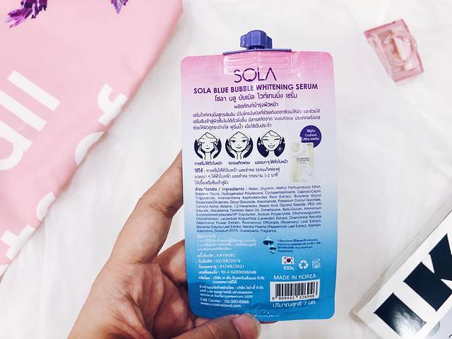 优点:浓缩美白精华素,绵密的细泡沫(这段时间在泰国很受欢迎)有助于将精华液更快且深层地让皮肤吸收,还可以为皮肤补充氧气。而Volufiline提取物是一种天然提取物, 有助于使皮肤变得紧致,补水锁水,另外蓝色蘑菇提取物可以容光焕发。需持续使用。
