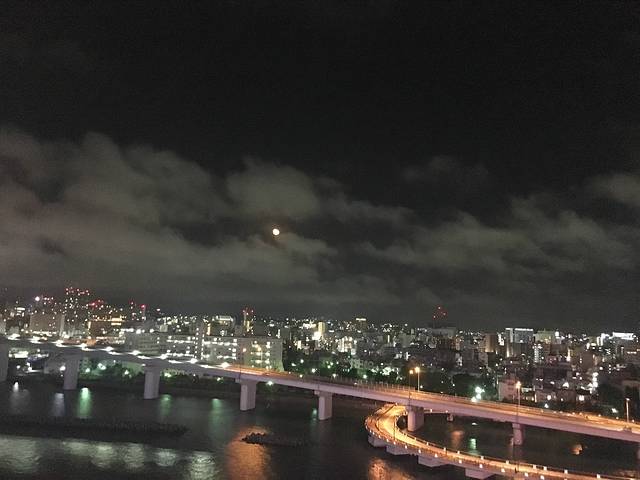等開船的時候,從船上看那霸泊港旁的夜景。