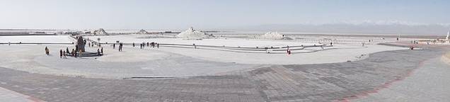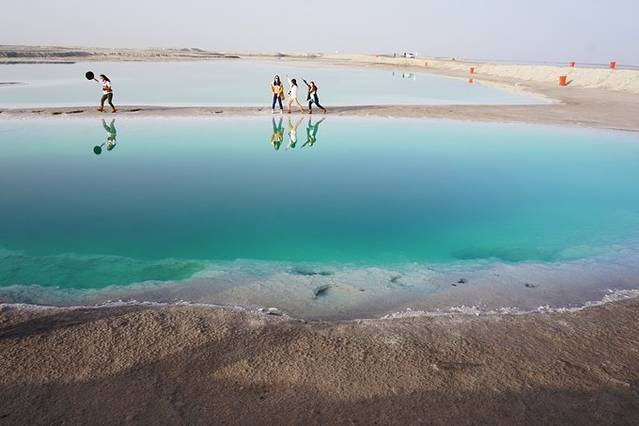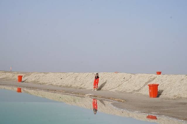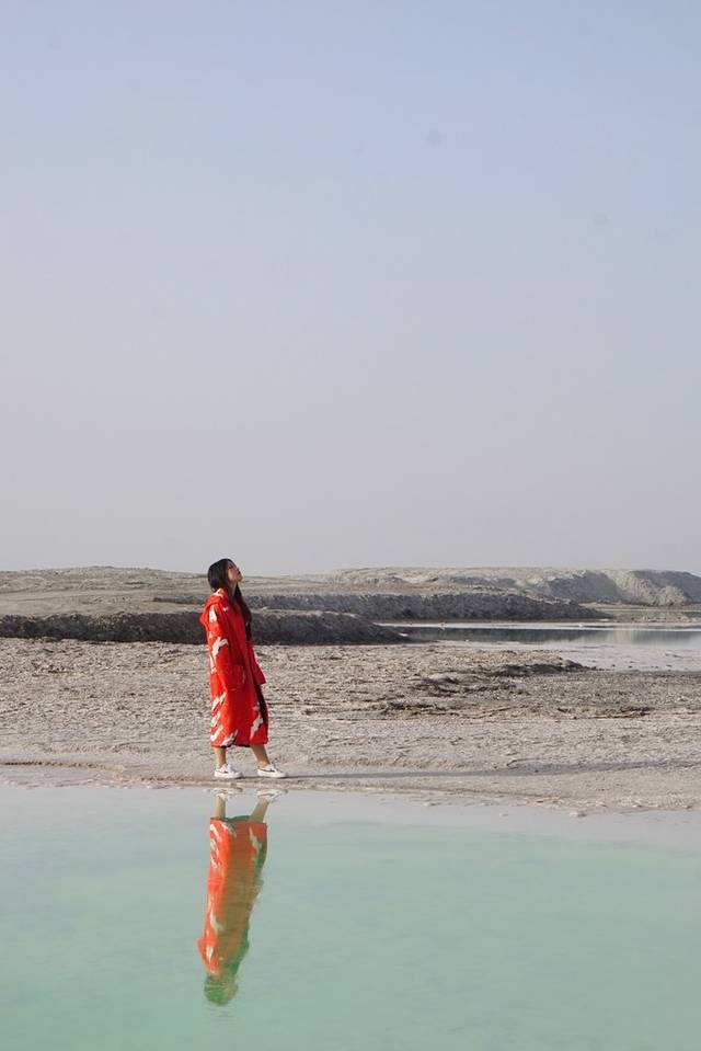 千万要注意的是,近湖岸的边缘,有一些看似坚固但其实已经融化变软的盐层。