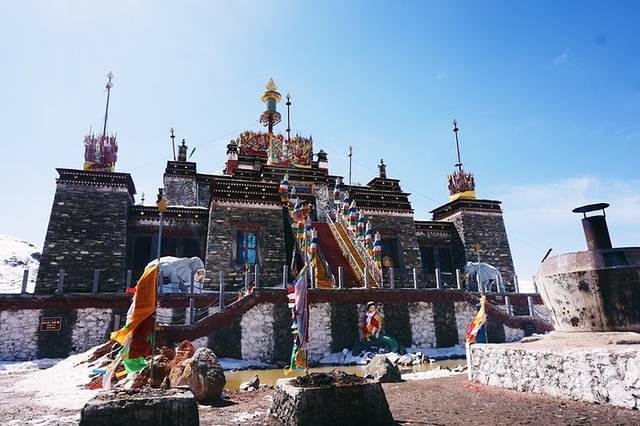 神殿后方有一个漂亮的经幡,但因为我们穿的帆布鞋,不便踏上雪山,于是就放弃了进去。