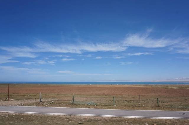 从远处看,湖水的颜色是深蓝色的,听说天气好的时候,湖光天色便会融为一体。