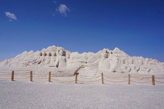 沿着木栏走会经过一片盐雕,刻画的栩栩如生,很是有趣。
