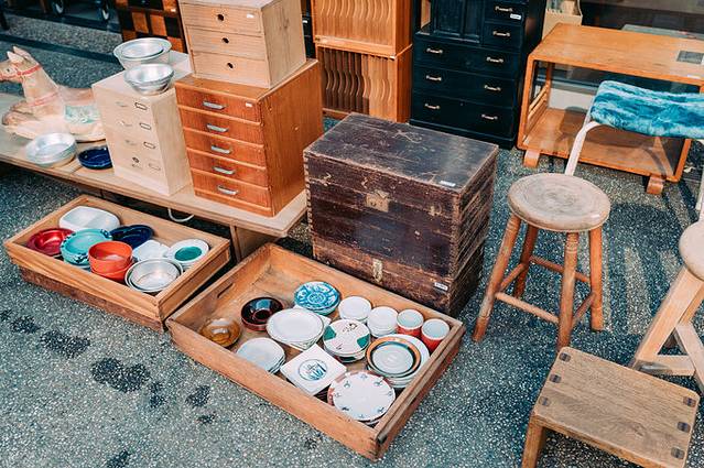 另外,还有一家无名家具店,售卖各种二手家具,柜子、桌椅、碗碟等等,种类很丰富,无不散发着迷人的复古气息。