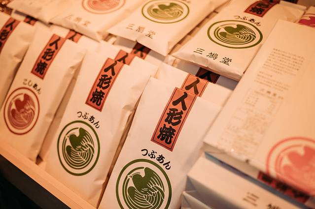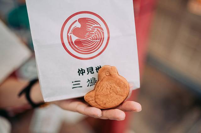 「三鳩堂」的人形烧记得去买!我觉得特别好吃!这里分为现吃的和礼盒装,礼盒中是真空包装的保质期1个月,可以作为伴手礼带回家。不过我更喜欢买现吃的,虽然保质期仅仅3天,一般我就直接站在摊子旁直接吃完。