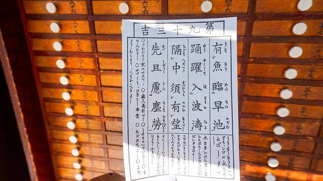 宝藏门身后便是浅草寺的「本堂」,供奉着观音,也称作「观音堂」,这里禁止拍照。参拜本堂前,入乡随俗按照日本参拜神社和寺庙的礼仪,先去手水舍洗手、漱口。然后可以在本堂前面的香炉前烧香,据说全身笼罩在线香的烟雾中,可以治愈疾病,改善健康状况;还可以花上100円求个签,用签筒摇出竹签,按照数字在抽屉里取出注解,看不懂日语没关系,背面还有英文注解。浅草寺的诗签以“凶”签多闻名,不过几年前鼓起勇气抽签居然收到“吉”,还真挺开心的,起码给了我一天的好心情~