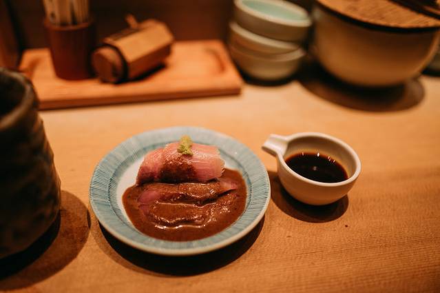 来『つじ半』几乎每次都要排队,最夸张的是第一次来的时候三个人在冷风口吹了将近2个小时,吸取之前的经验,这次我们踩着晚餐的营业时间到店,发现门口没人,本以为还没开始营业,结果推开门一看,里面所有位置已经全部坐满了.....