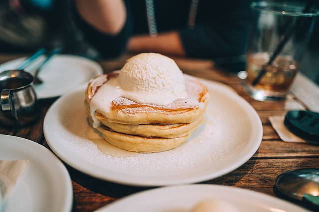 香草冰激凌焦糖布蕾、枫糖芝士蛋糕配焦糖核桃仁是午间套餐里的甜品,此外,我还单点了一份IVY经典松饼,好吃是真心好吃,只是这顿午餐的热量怕是要爆表~