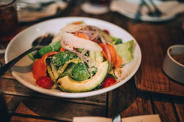 前菜是时令生鱼片、三文鱼蔬菜沙拉,沙拉里有三文鱼、牛油果、奶酪和几种蔬菜,蔬菜的清爽、三文鱼的鲜嫩与奶酪的浓香混合,味道简直太赞了!