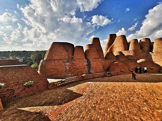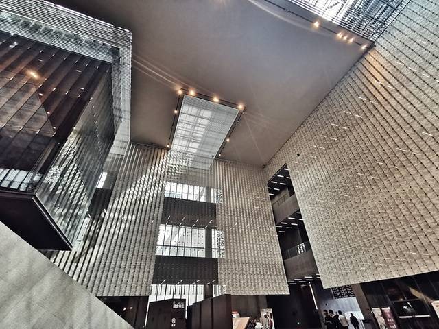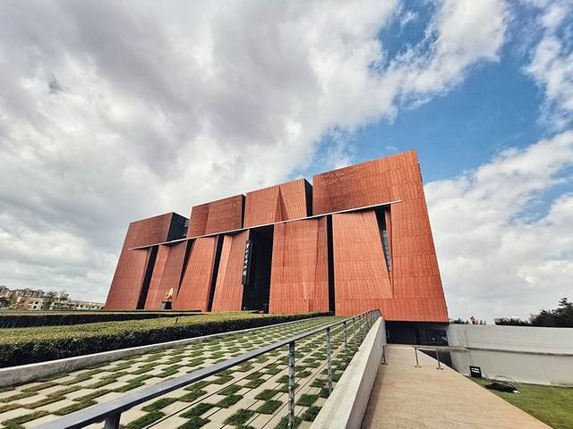 之前做攻略的时候就觉得博物馆这个建筑很特别,看图片像是类似红砖的材料堆砌而成。而见了实物才知道,都是透视的材料,阳光下隐约能透过缝隙瞧见里面一些些。