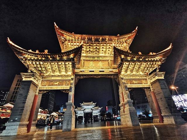 夜晚的1903的大门在黑暗中blingbling的闪耀着~