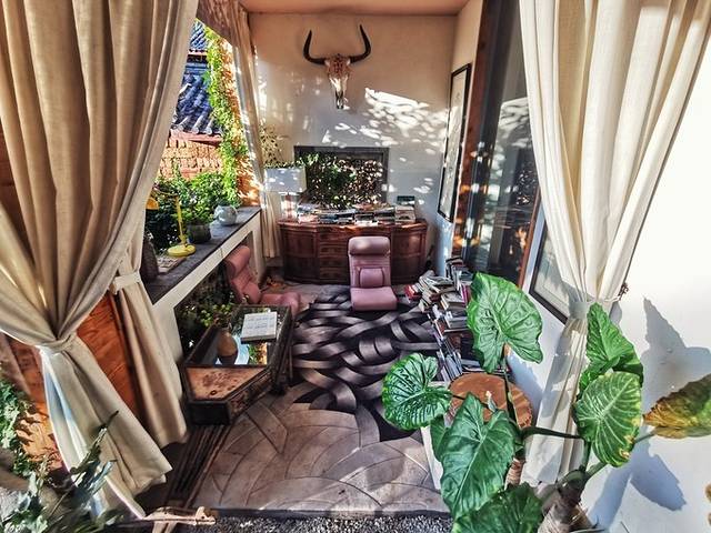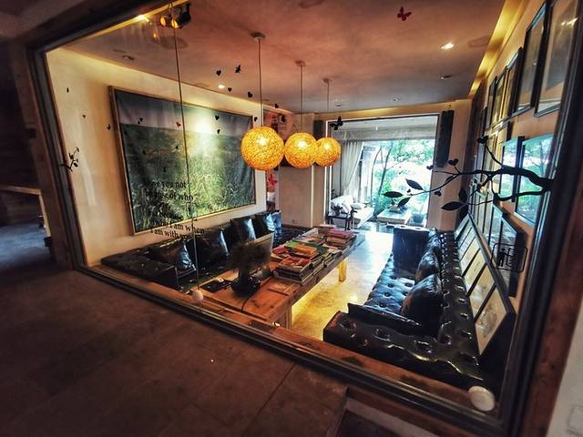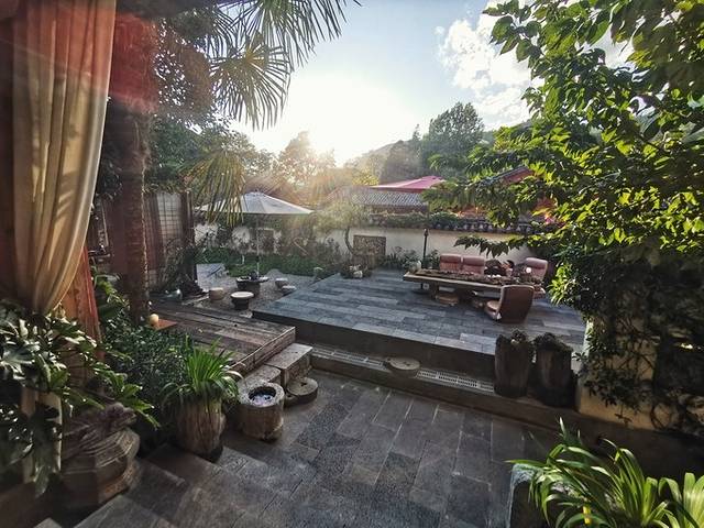 室内的装修很别致,有种特别的风情,露台望去还可见远处的景色,很美。
