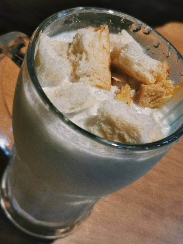 云南 当地一种特色饮品,感觉喝起来就像椰汁加了西米露又泡了几块吐司块,居然要RMB 12,还不如我大 海南 的清补凉鲁~