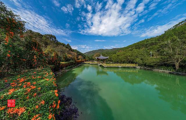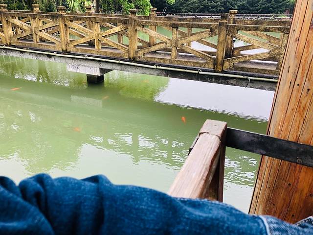 翡翠湖很恬静,微风徐徐,锦鲤点点,憩坐兰亭上,思想山水间。