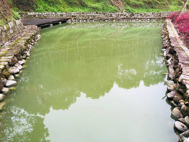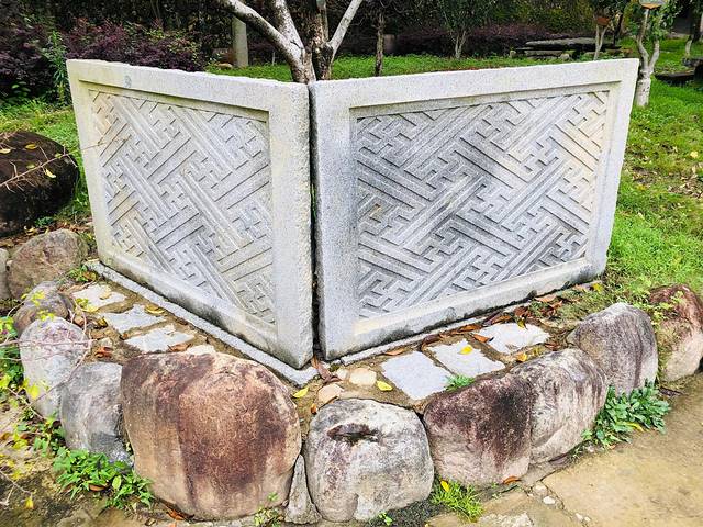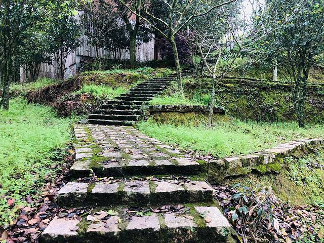 沿着青石台阶、古竹篱笆还有路岩青苔,走至“明代青石长廊”。长条椅案,俯身于上,斑驳表面,诉说数百年的光阴故事。
