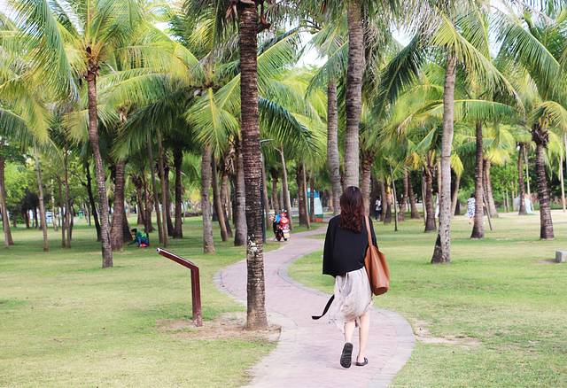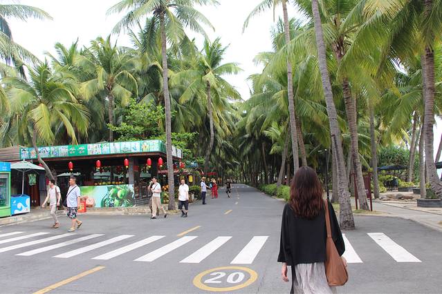 从大小洞天返程回酒店的过程中,途经椰梦长廊,我们就中途下车了,椰梦长廊是沿三亚湾由椰子树形成的长廊小路,因为刚去过了大小洞天,可能有点审美疲劳,所以并没有想象中的那么惊艳,不过这个时间点(下午五点多)还是很美的,没有那么晒,海边人超级少,走在海边的椰子林等待日落。