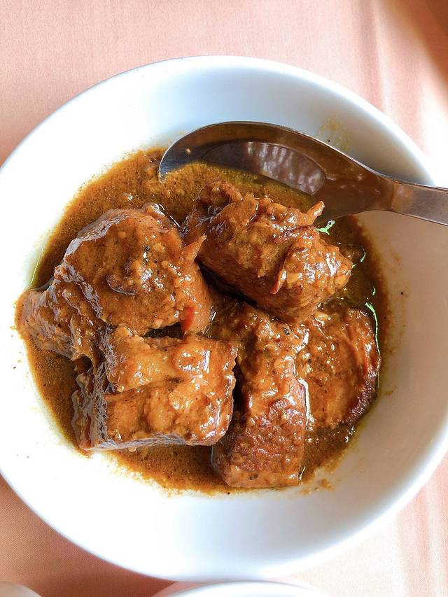 必点的菜谱就是“moo hong”每桌都点了这道菜,它是普吉岛的特色菜,就是中华香草汁腌制五花肉,味道香甜真美味。