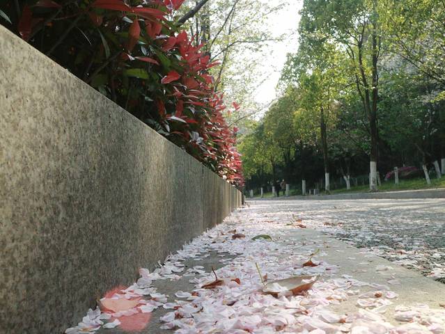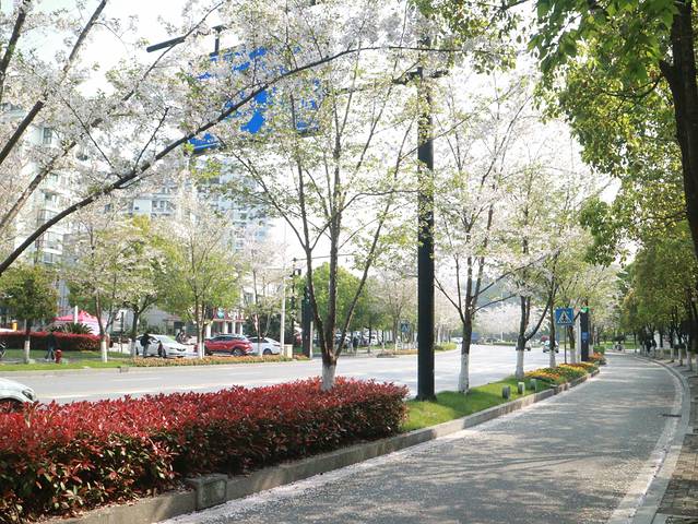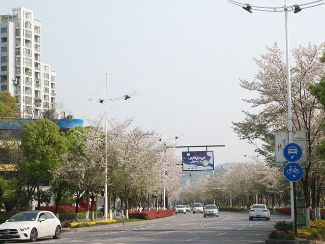 这个季节正好是樱花盛开的时候,楼下的迎宾大道一路都种满了樱花。