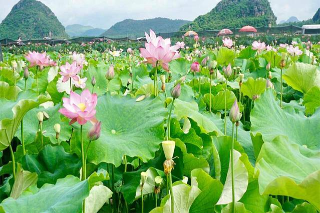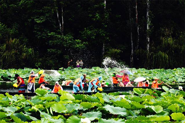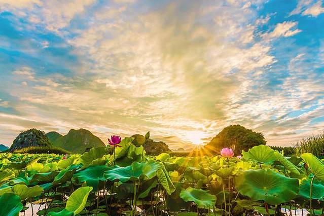 早餐后因路程长,我们早早的踏上旅途。普者黑依旧保持着最原生态的风光,这里隔绝了大城市的钢筋铁骨,繁华喧闹,多了一分乡村的宁静。 暖风拂过,桃红摇曳,安静和谐。春看桃园夏看荷,这里最独特的风景,莫过于整个湖区都被巨大的荷花覆盖的普者黑,被号称世界最大的荷花园。165平方公里的湖区内,荷花自由自在地生长,正如是“接天莲叶无穷碧,映日荷花别样红”。这里有特色的五色糯米饭,荷花宴,整桌餐由荷花为装饰,小孩子看到后很喜欢,味道也不错。晚上,我们去丘北县城买了食材,在营地湖边烤烧烤,还可以钓鱼,一家人其乐融融,这样的场景深深印刻在脑海之中。