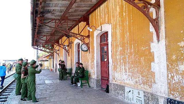 下午,我们去了碧色寨,这个建在半山腰的寂静小山村,曾经是商贾云集的繁华之地,夕阳西下的碧色寨,红瓦黄墙泛着一种融融的暖色,使人仿佛穿越到了另一个时空。如今,它越发受到摄影师的青睐,电影《芳华》、《无问西东》曾到此取过景,除了铁路边上那些黄色的老房子,铁路两边山坡上还有许多古旧的建筑,包括以前法国人的养牛房、站长室、职工食堂、酒吧。