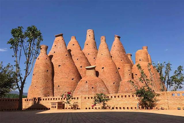 早餐后,我们前往东风韵庄园,这里涵盖生态农业、艺术文化、休闲度假养生等多种产业,主要建设内容包括包括熏衣草庄园、艺术酒店、万花筒艺术庄园、“红土情”艺术馆和艺术家庄园等。超现实加后现代的建筑风格,用类似酒瓶形状代表了红酒文化,同时还有彝族的火文化和共生向上的三种文化结合。家人很喜欢这个地方,拍了很多照片,而我,更对这里的红酒文化感兴趣。这里的卤鸡很不错,看着照片,你留口水了吗?