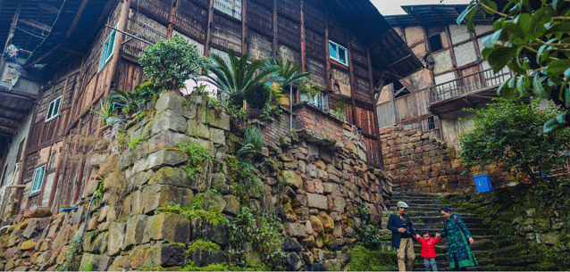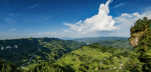 我与朋友自驾从重庆出发,沿内环快速路上兰海高速,在綦江下道,再进入兰海高速,在雷神店下道 ,沿210国道往篆塘方向,在篆塘往右转往郭扶方向走,沿着蜿蜒的山路上山,说是山路,路况并不差,道旁密密的森林,林间充满了湿润的泥土和植物混合的芳香,全程约102公里,大概行驶2小时后,一座漂亮的小村子出现在密林尽头,高庙到了。