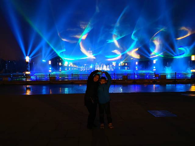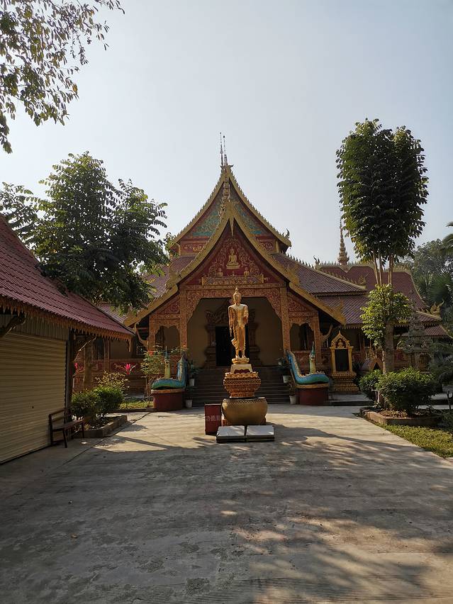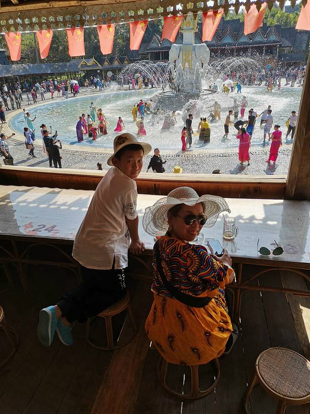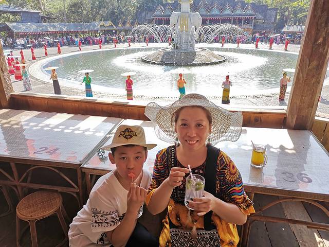 每天都有泼水表演。很商业化,我这边是对面一半价钱。不花钱,连个凳子都不许坐,里边很大,转完了,在这里休息看看人家泼水挺好,我也想下去了,但是闻闻水有点臭啊,好几部电影就在这里拍摄的。《湄公河大案》就是这里了,去南边不远就是那条河,然后可以去缅甸,但是不过境。也不下船,一个人好像是240吧,超贵的。40分钟左右。