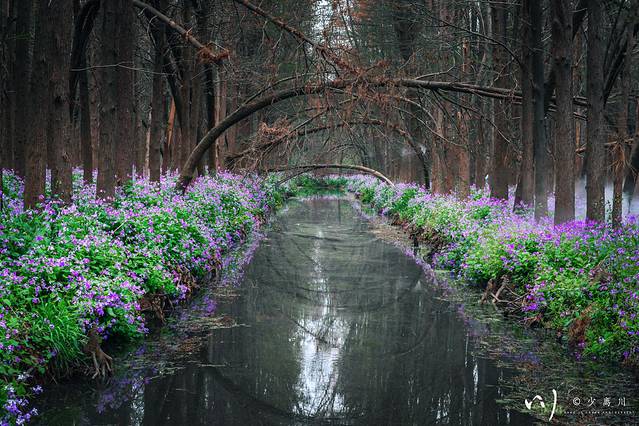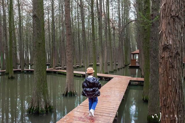 一颗颗水杉安静地立于这雾气弥漫的水之间,春风点点浸润在这薄凉的空气里,尘世的喧嚣和繁杂瞬间被洗涤的干干净净。