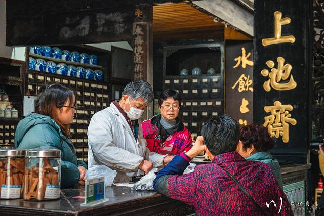 走进老街口就能看到一家有历史的药店——上池斋,一个百年老字号中药店,光看着这墙壁就能闻到历史的味道……