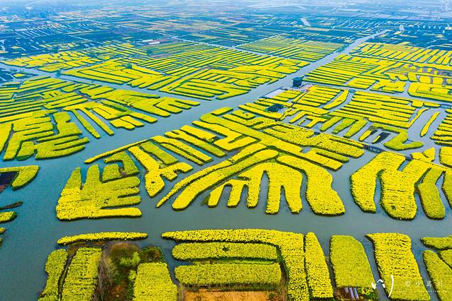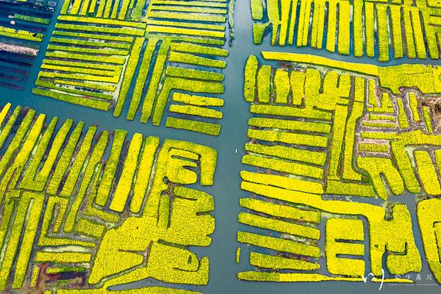 如果你有无人机,请记住一定要带上,从空中看这个景区才是精华所在,可以看到千姿百态的垛田形成了上千个湖中小岛,岛上开满了金灿灿的油菜花……