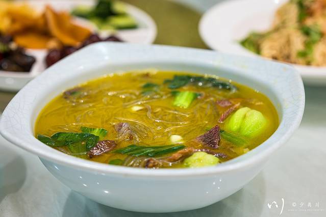 鲜鲜的鱼汤面也是早餐不可错过的一道,汤白汁浓,滴点成珠,清爽可口,还有较好的养生作用。