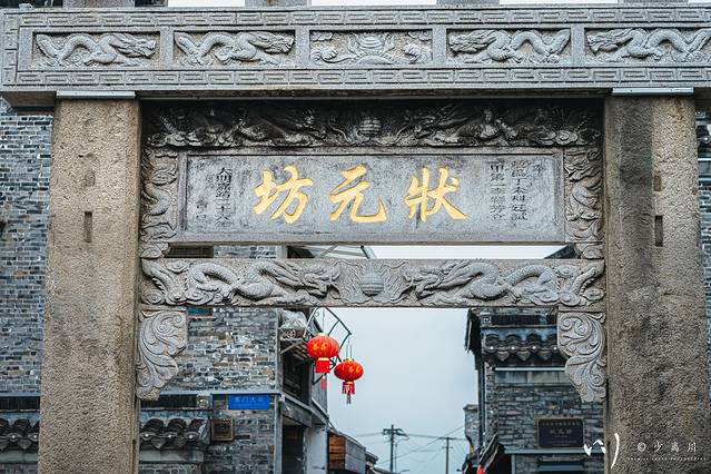 老街巷子中间的状元坊,始建于明代嘉靖二十六年(1547),奉旨为状元相李春芳所立。现在成了这条老街必打卡点了,状元坊下面来回走一圈就能好运来,来了一定不要错过。