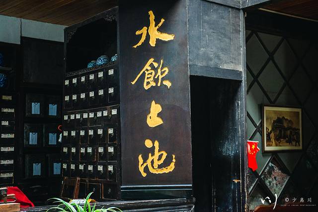 两柜台端首有“橘井流芳”、“水饮上池”、“采芝寿世”、“杏苑长春”金字匾额,相映生辉,药店至今正常经营,主营丸、散、膏、丹,兼营饮片,保持传统格局和风貌。