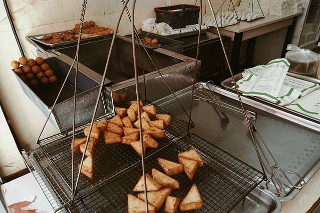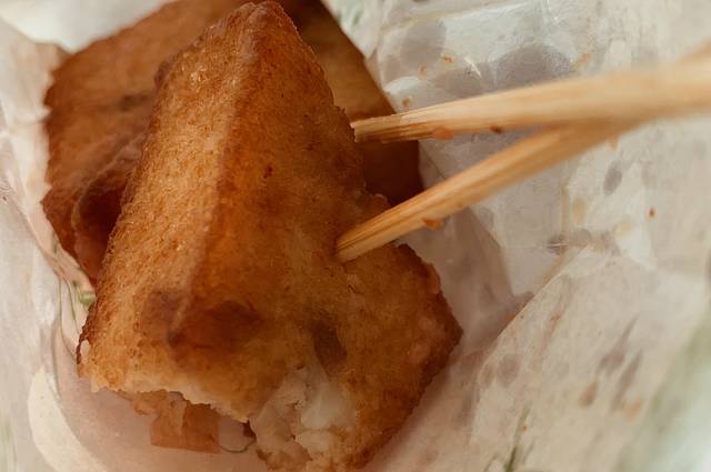 主打的三角粿其实就是臭粿(本地话),油炸过后外皮脆,内里嫩