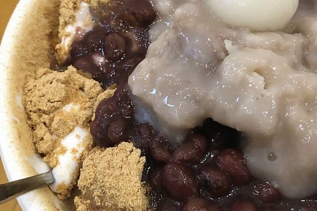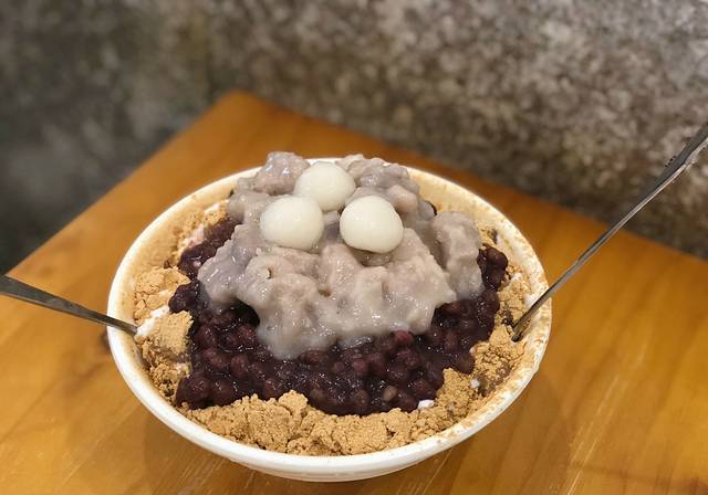 撒了大豆粉的绵绵冰就像注入了灵魂,里面的芋圆和小丸子软弹,牛奶冰也是香甜的