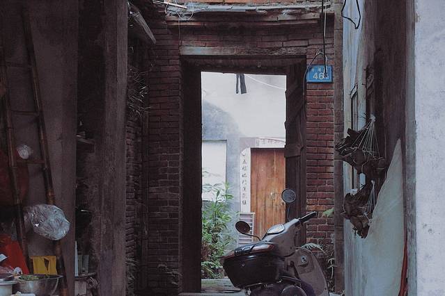 路过城墙脚有一处古厝,渔人码头停靠着渔船,别有一番韵味