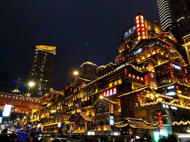 重庆繁华的商业圈,重庆的地标性建筑之一,住的话可以选择在这里,吃的穿的玩的一站式满足,离洪崖洞步行15分钟左右的路程,晚上无聊的话可以走过去看看夜景还能错峰出行。