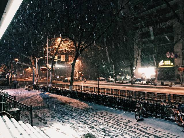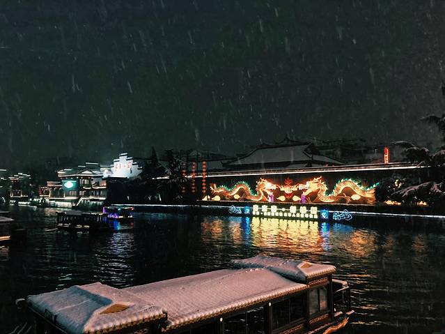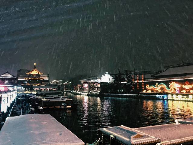 回到酒店无聊躺床上刷手机,小侄女自己无聊到处看然后告诉我外面下雪了,我俩别提有多高兴赶紧穿上外套出门,出门时有积雪太滑了还差点摔倒了(´;ω;‘) 然后酒店的小姐姐告诉我们想拍好看的雪景就去夫子庙,于是俩人赶紧打车前往,一来一回折腾到半夜11点,小屁孩比我还兴奋吵着不想回去,哈哈哈哈