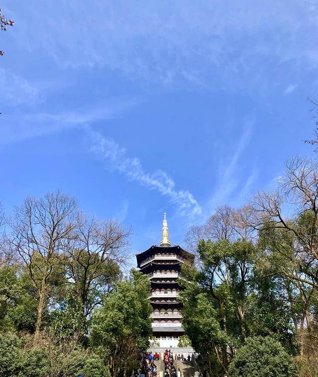 逛完西湖,出发第二个代表性景点啦。<法海你不懂爱,雷峰塔会掉下来>脑海里一直循环这首歌,太上脑了。新修的雷峰塔更像一个博物馆,从底座往上共有5层。检票后先乘坐电梯到塔基遗址,这里可以看到被玻璃围起来的旧塔的残破底座,里面满地都是零钱,也算是雷峰塔一景。这一层还有一些地宫出土的文物展,正式登塔,里面有步行的楼梯,也有手扶电梯,大多数时候都需要排队。不管是等电梯还是爬楼梯都是人多到不行,雷峰塔高处的视野很好,可以看到整个西湖。