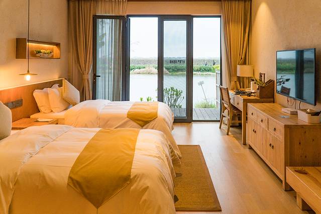 位于里下河腹地,千垛镇碧水东罗乡村旅游度假景区内。它有10栋独栋别墅,围绕着平旺湖。听说他是万科建设的,而且配套有大礼堂、村民食堂、服务中心等。民宿的每个房间,大大的落地窗外,就是平旺湖水和油菜花,真的美得不要不要的!