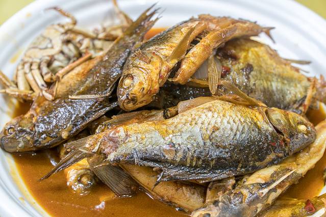 作为鱼米之乡,特色美食非常多。垛田上长的“兴化龙香芋”还上过《舌尖上的中国》。兴化大闸蟹、熏烧、沙沟鱼圆、河鲜等,都是传统美食。这里流行着一句话,叫做“早上皮包水,晚上水包皮”。