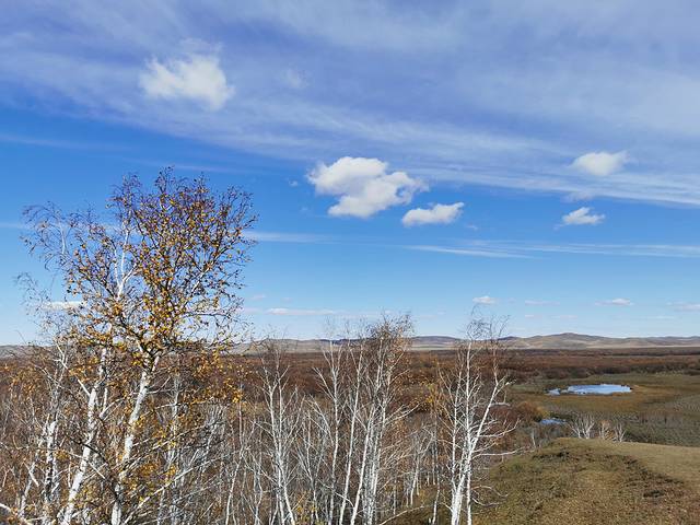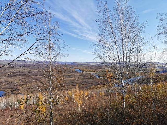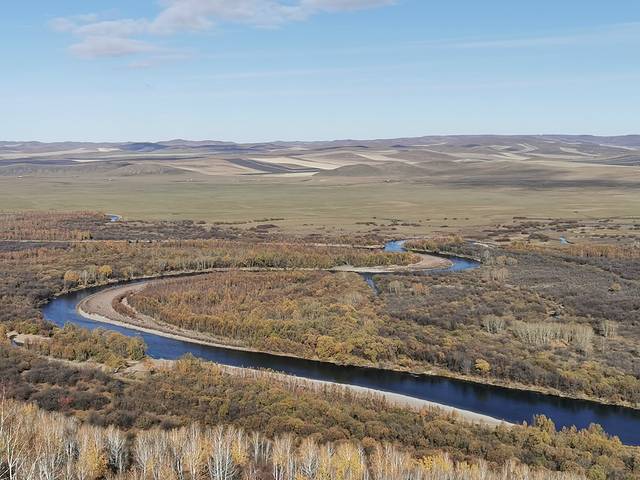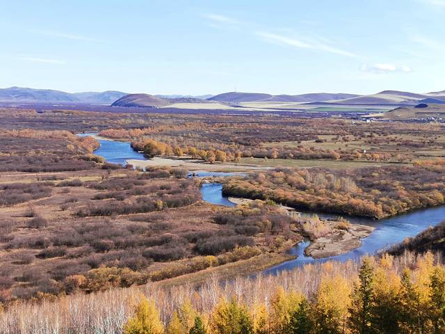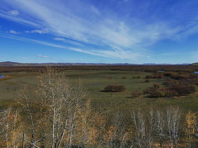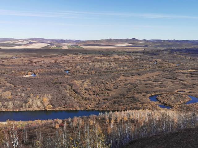 湿地涵盖了额尔古纳除原始森林外几乎所有类型的自然生态系统。在干旱的季节,由于较稳定的水情、充足的湿地,这里成为许多鸟类非常重要的庇护场所。清澈的根河静静流淌,曲水环抱草甸,岸边矮树灌木丛生,绿意盎然;而秋季草木泛黄,远远望去是一片金色的大地,又是另一番壮美的景象。