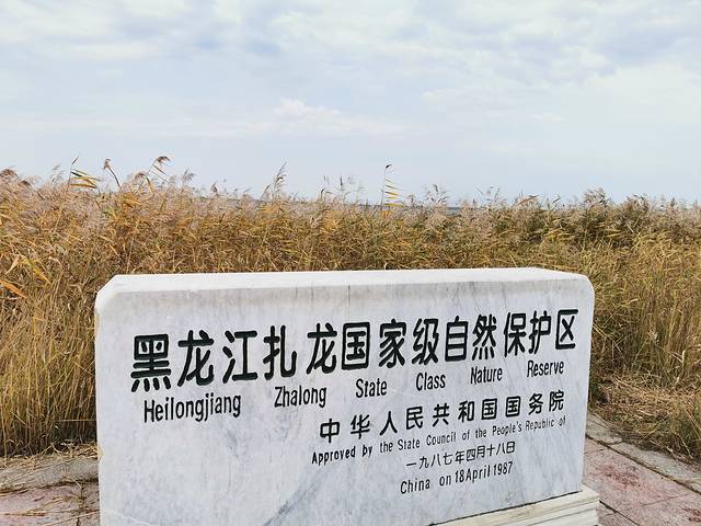 扎龙自然保护区是世界最大的芦苇湿地,也是丹顶鹤的故乡。扎龙保护区河道纵横,湖泊沼泽星罗棋布,建有长长的木栈道架于水上。景区很大,从大门到观鹤区乘坐电瓶车(每人10元,中间停3个站点,可随上随下)。