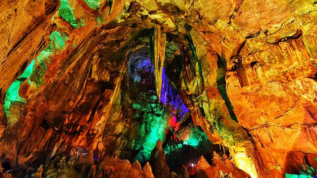 前山的猿王洞是川西北少有的高山溶洞。所以,来了九皇山不游览一番猿王洞怎么能行?甩开步子进入猿王洞,刚到洞口就有阵阵酒香袭来。原来是洞口右侧酿造的“猿王玉液”害怕无人赏识而散发出的阵阵幽香。洞中钟乳石形态各异,有的像一座屏风,有的像一个个调皮的猴子,煞是好看。